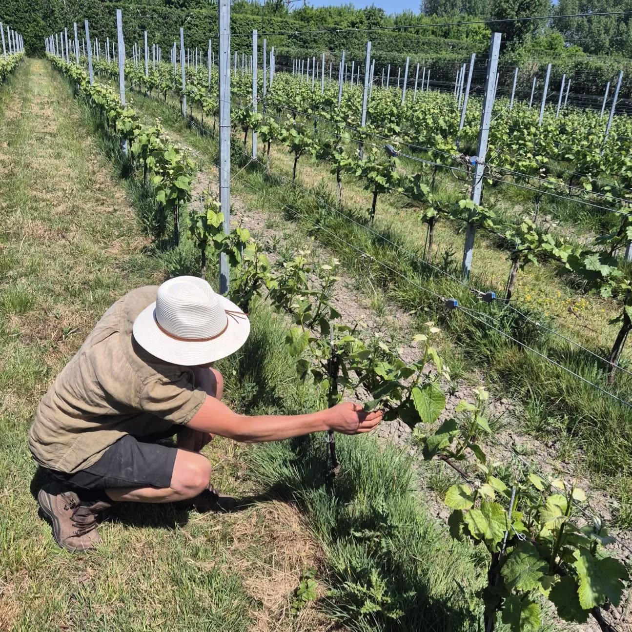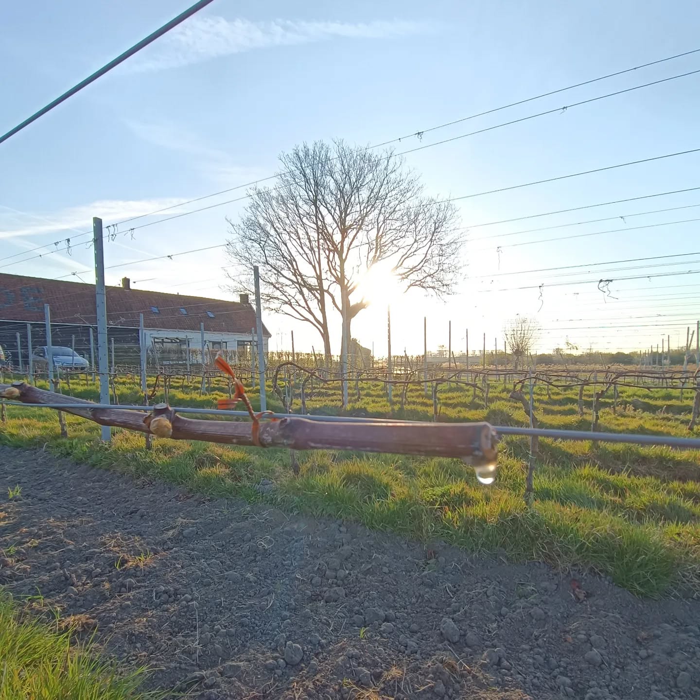 De wijngaard is klaar voor 2025! De ranken zijn gesnoeid, de leggers afgelegd. Met dit warme weer komt de wijngaard weer langzaam op gang. De sapstroom is alweer op gang gekomen. Dat zien we aan de bloedende ranken (niets ernstigs), maar ook de zwellende knoppen! De Madeliefjes en de Paarse Dovenetel zijn al bescheiden aan het bloeien