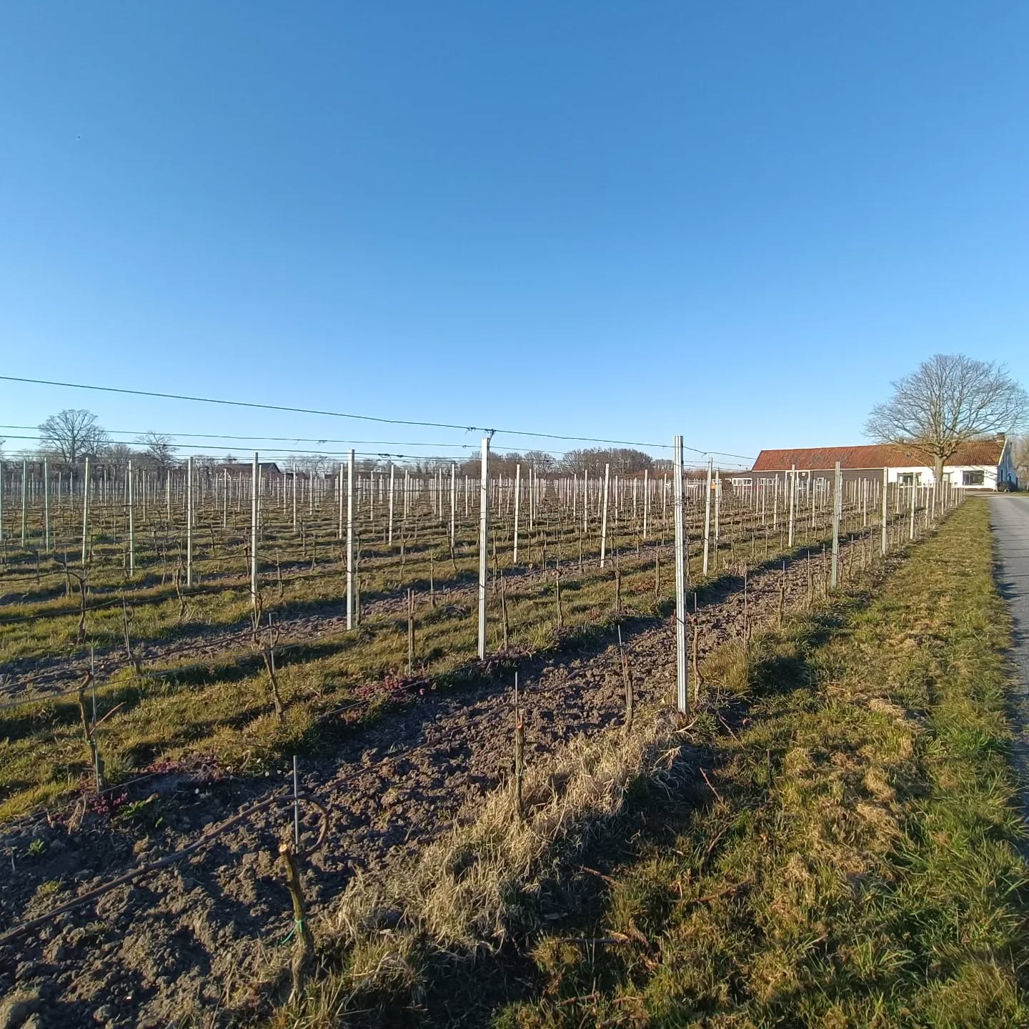 De wijngaard kleurt ondertussen prachtig in herfsttinten 🍂. Terwijl de natuur tot rust komt, maken wij ons alweer klaar voor het volgende seizoen, met het snoeien van de wijnstokken en het verrijken van de bodem met duurzame champost.