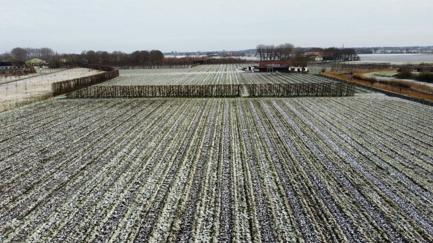 Na wat dagen vorst eindelijk wat sneeuw! Ook wijnranken hebben wel degelijk iets van koude nodig om in het voorjaar weer mooi uit te lopen. Zoals het ’t Zeeuwse maritieme klimaat betaamt, was het als sneeuw voor de zon verdwenen…