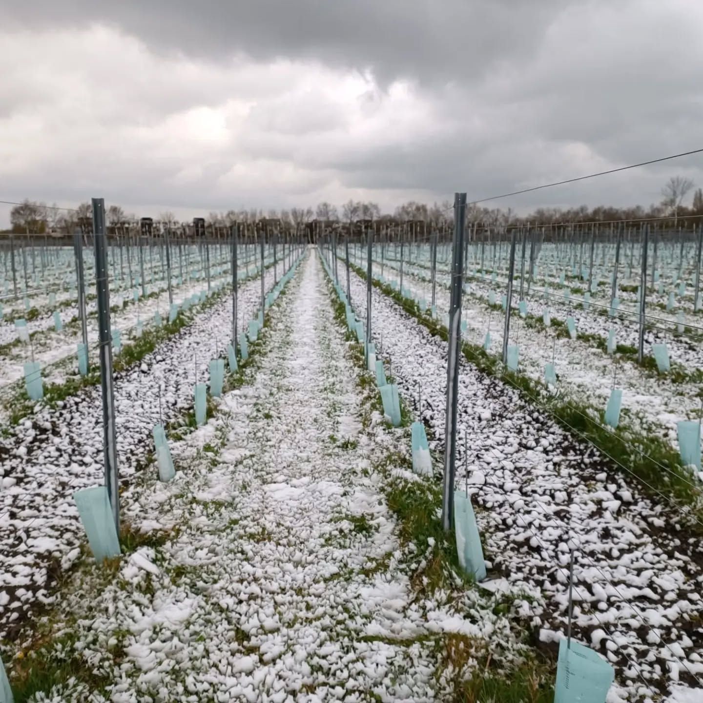 Na wat dagen vorst eindelijk wat sneeuw! Ook wijnranken hebben wel degelijk iets van koude nodig om in het voorjaar weer mooi uit te lopen. Zoals het ’t Zeeuwse maritieme klimaat betaamt, was het als sneeuw voor de zon verdwenen…