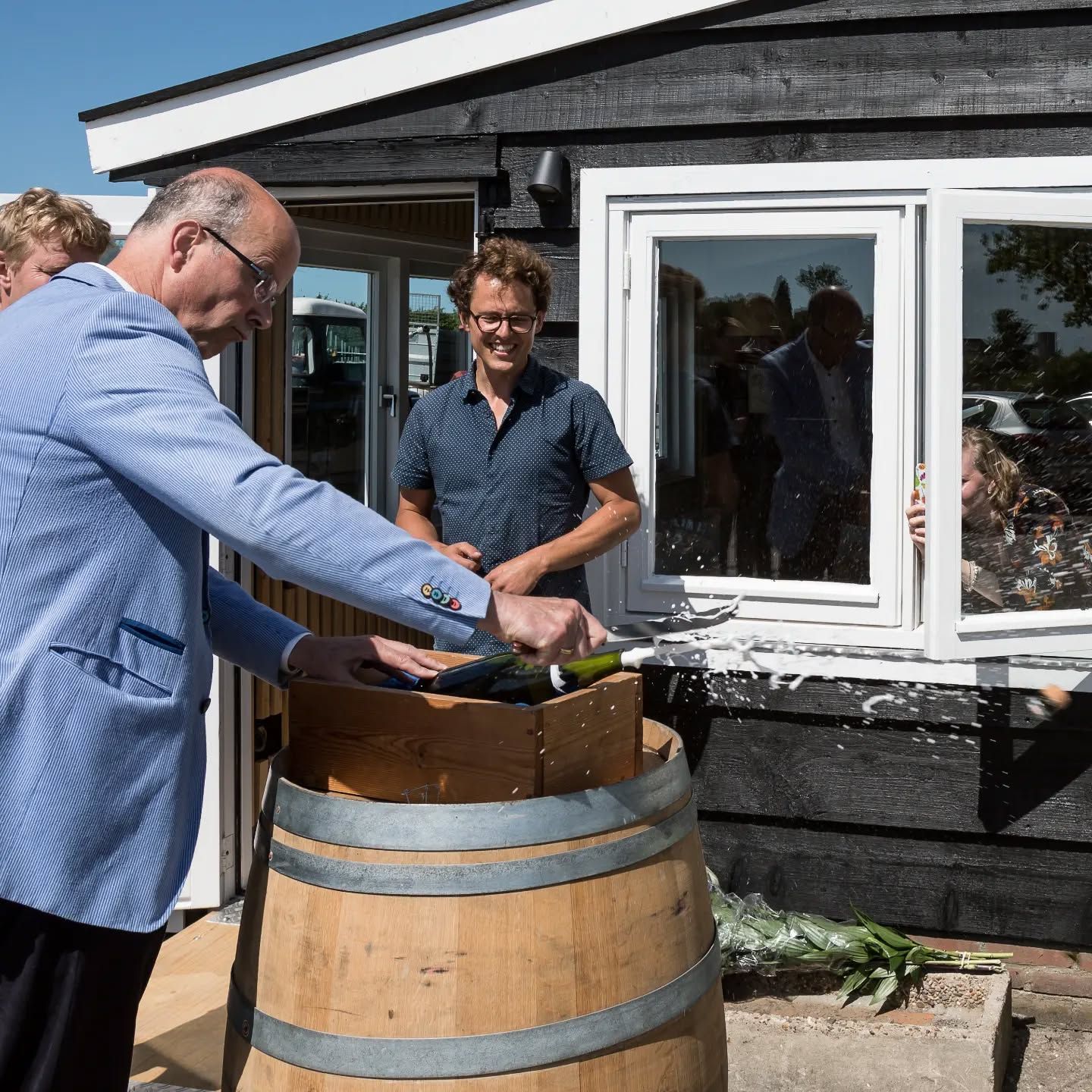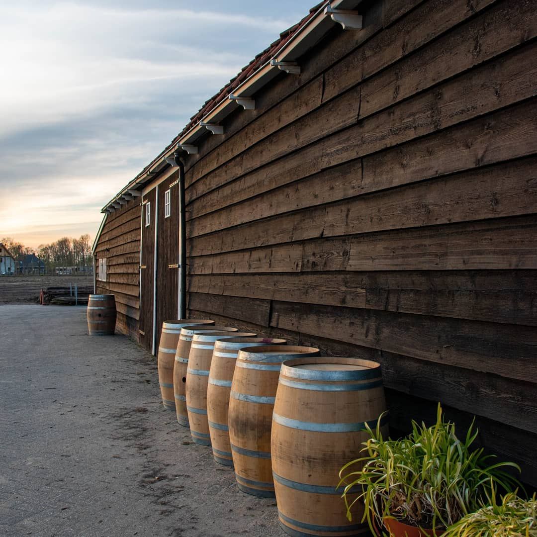 Op dit moment zijn we aan het werk in onze typische Zeeuwse schuur. Hier gaan we na de oogst onder de juiste omstandigheden onze wijn maken. In de schuur bouwen we aansluitend onze ontvangst- en proefruimte waar geklust wordt.