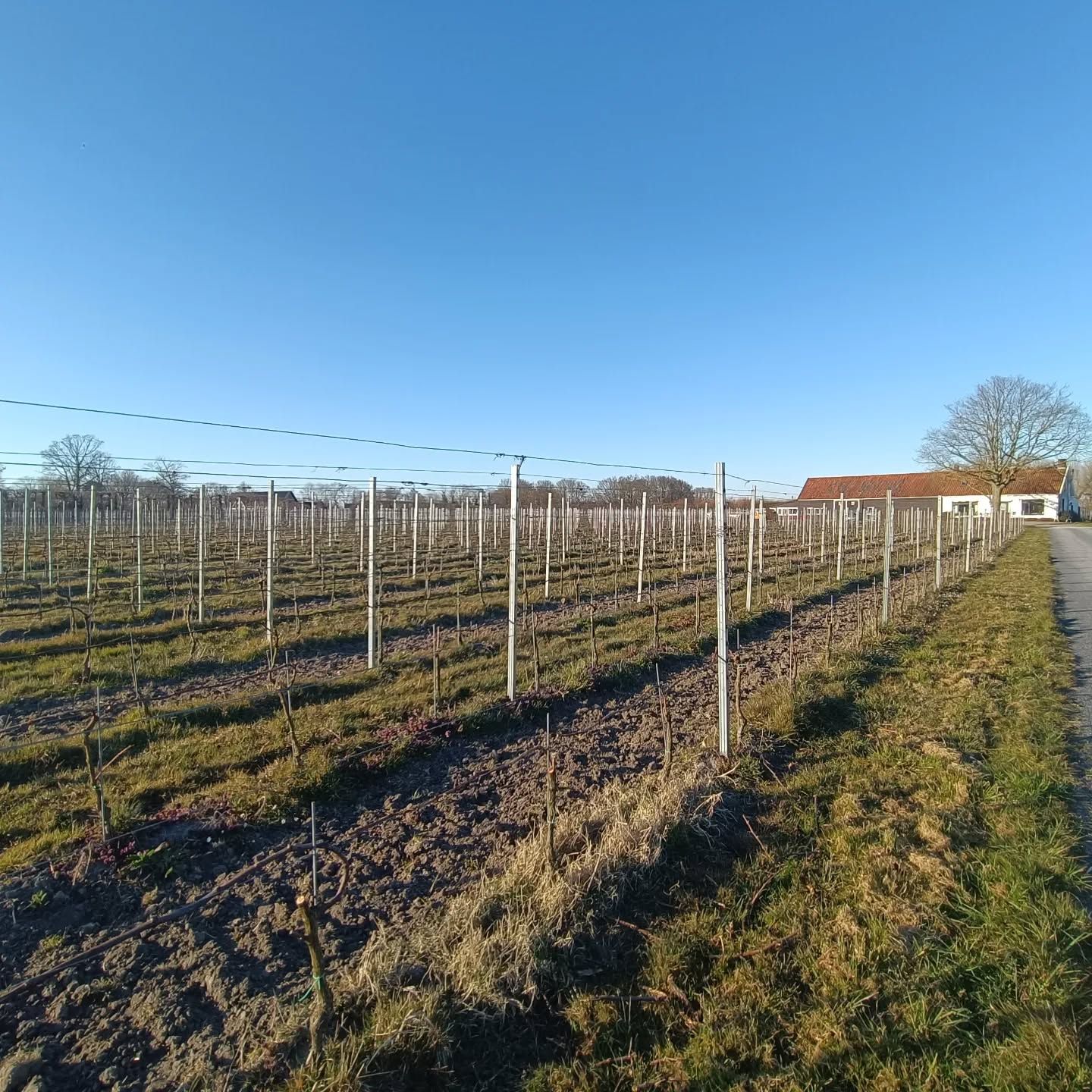 De wijnranken hebben sinds de aanplant in mei 2021 kunnen wennen aan de Zeeuwse grond en hebben zich goed ontwikkeld. Het is nu de tijd om ze voor het eerst te snoeien.