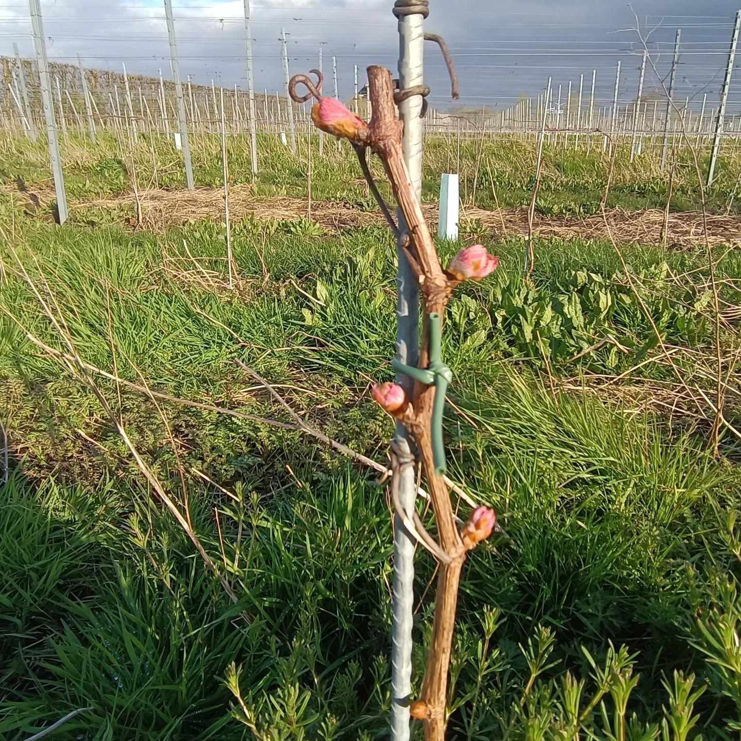 Het voorjaar is nu toch echt los! De sapstroom is op gang gekomen, de wijnranken bloeden, de knoppen beginnen te schuiven. In het geval van de Muscaris, ons vroegste druivenras, zijn de eerste blaadjes al zichtbaar. Nu duimen dat er geen vorst komt 🤞