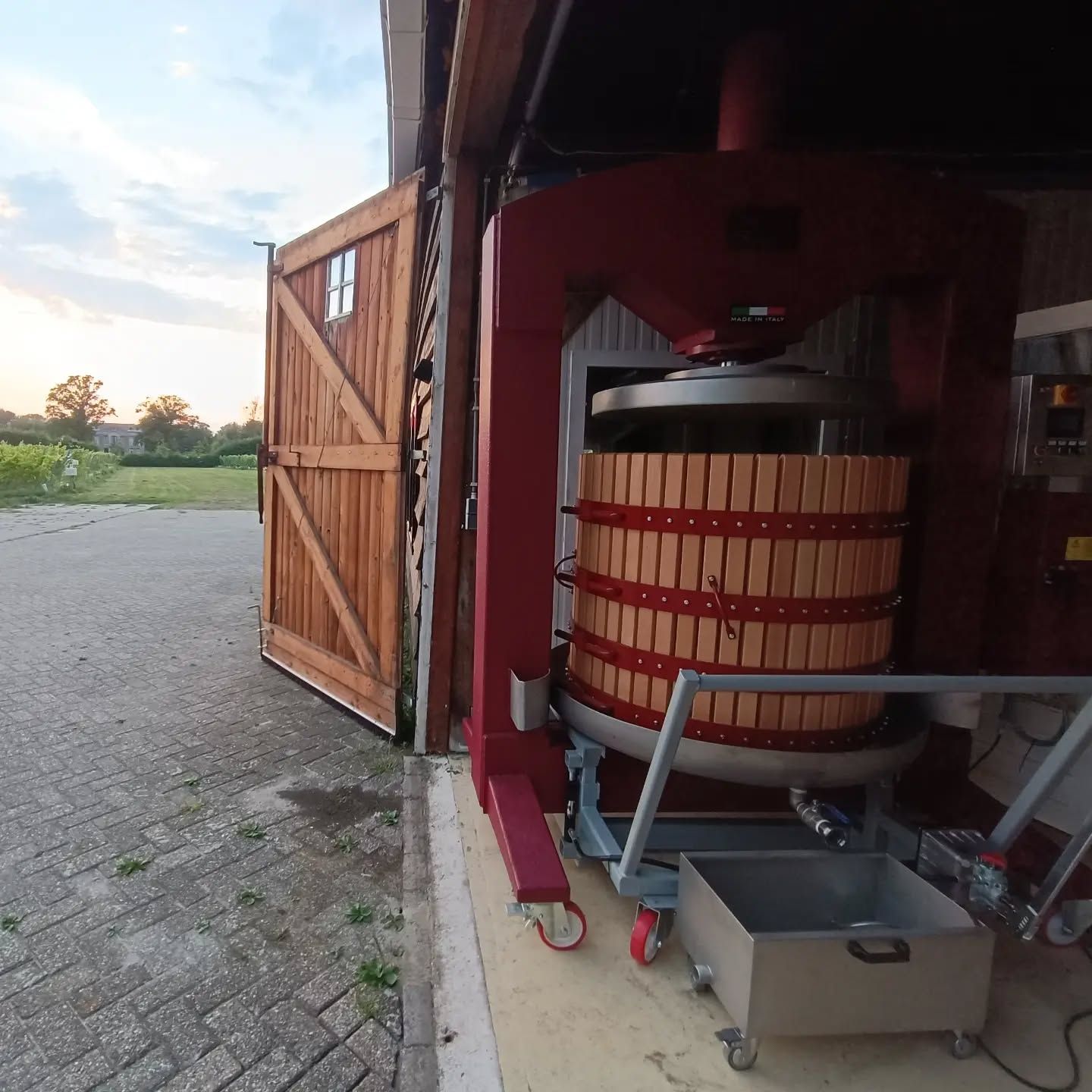 We hebben de wijnpers ontvangen! Na lang wikken en wegen hebben we uiteindelijk gekozen voor de traditionele korfpers. Vanaf dit jaar worden alle druiven van Wijndomein De Boe op deze wijze geperst! Het is een uitdagend seizoen, en we moeten nog even, maar de druiven zien er goed uit!