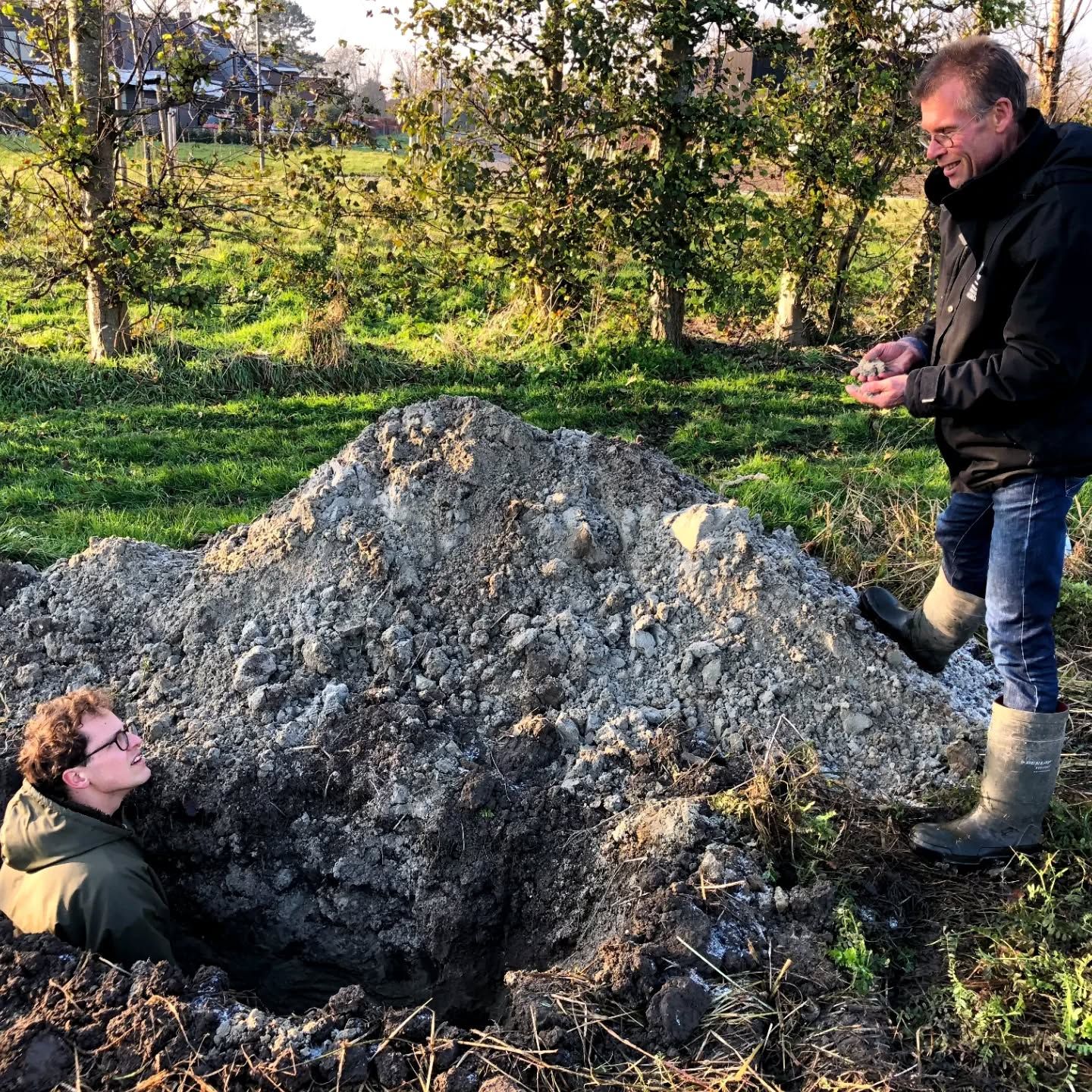 Als wijnboer wil je precies weten hoe de verschillende grondlagen zijn opgebouwd. Daarom hebben we een diep gat gegraven om dit te analyseren.